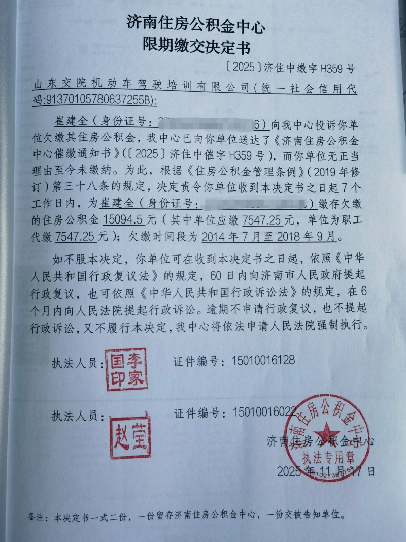 限期缴交决定书【2025】济住中缴字H359号